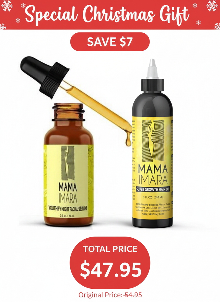 You get the large Mama Imara Supergrowth Hair oil, 8 oz and 2 oz Youthify Nighttime Facial Serum.